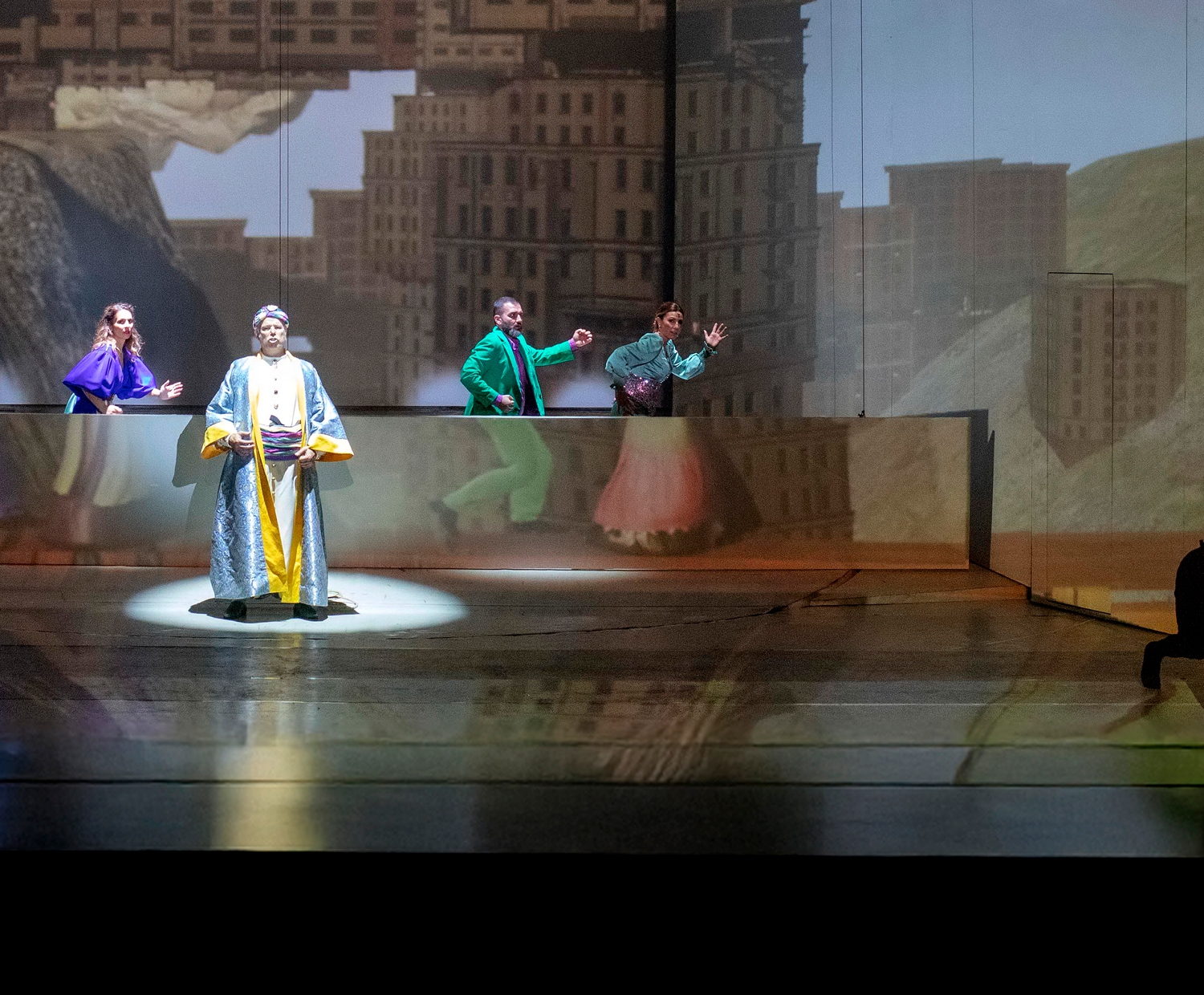 Ebben a Mozart-darabban ugyanis az operistáknak az énekszámok között prózát kell mondaniuk, míg a cselekmény végkimenetelének szempontjából meghatározó szerepet játszó Szelim basa egyáltalán nem is fakad dalra. Mindkét mozzanat tartósan problematikus, mert hát a próza az operaszínpadon vajmi ritkán hat érvényesnek és/vagy helyénvalónak, egy drámai színész felléptetése pedig könnyen felboríthatja a darab kényes egyensúlyát. Pláne akkor, ha – mint manapság számos produkcióban – a rendező mindenestől Szelim alakítóját állítja a középpontba. Jóllehet, az énekszólamok azért mégiscsak fontosabbak a renegát basa tételmondatainál, s ráadásul az énekes szerepek izgalmasabb kérdéseket is vetnek fel, mint a nagylelkű Szelim figurája. Mennyire őszinte a hűség, az állhatatosság és a szerelmi önfeláldozás virtuóz gégemutatványait sorozatban abszolváló Konstanze? Aztán a harmadik felvonásban Belmonte-Konstanze duettjében nem meggondolkodtatóan sok-e az „énmiattam halsz te meg” és a „te halsz meg értem” ágáló felelgetése, amelyhez oly túlcsordulóan érzelmes és szinte elomlóan boldog zene társul? S persze mit lássunk Ozminban: komikus alakot, valódi vérszomjas rémet vagy szerepkényszerben dühösködő óriáscsecsemőt? „Akinek ennyi jó kevés, / Hadd érje gáncs és megvetés!