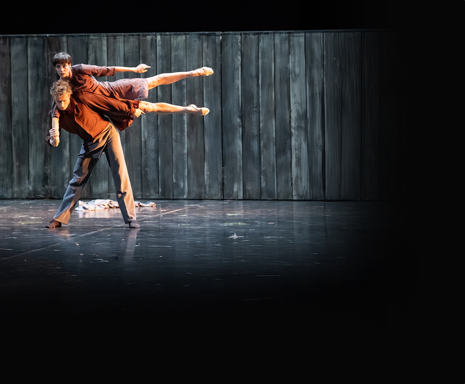 „Őrültségnek” tűnhet, hogy a tisztelettel övezett zenemű egyszer csak megszakad, elhallgat, majd egy idő múlva újraindul. Ezzel pontosan a zene ívét töri meg az alkotó. Majd végül nem a szokott zenei „csattanó” a táncdarab záróakkordja, hanem egy egészen más hangulatú mű, Arvo Pärt Für Alina (1976) című poétikus zongoradarabja festi alá a búcsúduettet, amely az elválásról, elszakadásról szól. Az alkotói eszköztár fontos kelléke a színpadon alkalmazott, kerekeken guruló deszkakerítés, a fal, amely kiterjeszti a mozgások lehetőségeit. Fel lehet rá mászni, lógni lehet rajta, vagy nekicsapódni, ajtók nyílnak és csukódnak benne, de le is dőlhet, hogy a táncosok testét emelve álljon fel újra. Rajta és ellenében is lehet táncolni... Életünk kereteinek, lehetőségeinek, gátjainak és kapuinak szimbóluma...